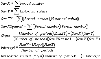 III. Linear regression – use a linear regression to find a best-fitting line, and then evaluate the point on the line that represents the next period to find its forecasted value.