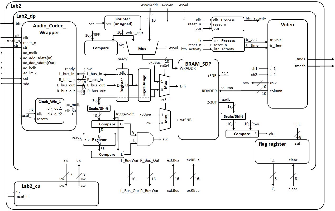 Since its a very complex piece of circuitry, the entity for the datapath (LAB2_DP in the block diagram) is