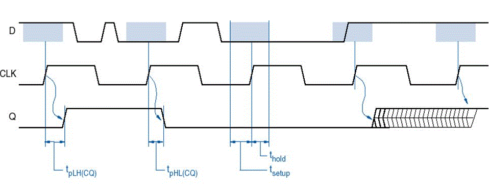 flop output, Q, becoming valid. This is the called the propagation delay of