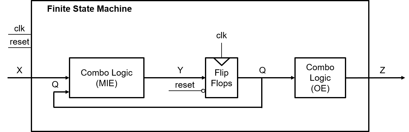 state of the FSM is carried on the Q lines. Each bit of Q is