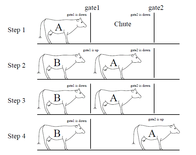 the gates in order to control the flow of cows is illustrated in the figure below.
