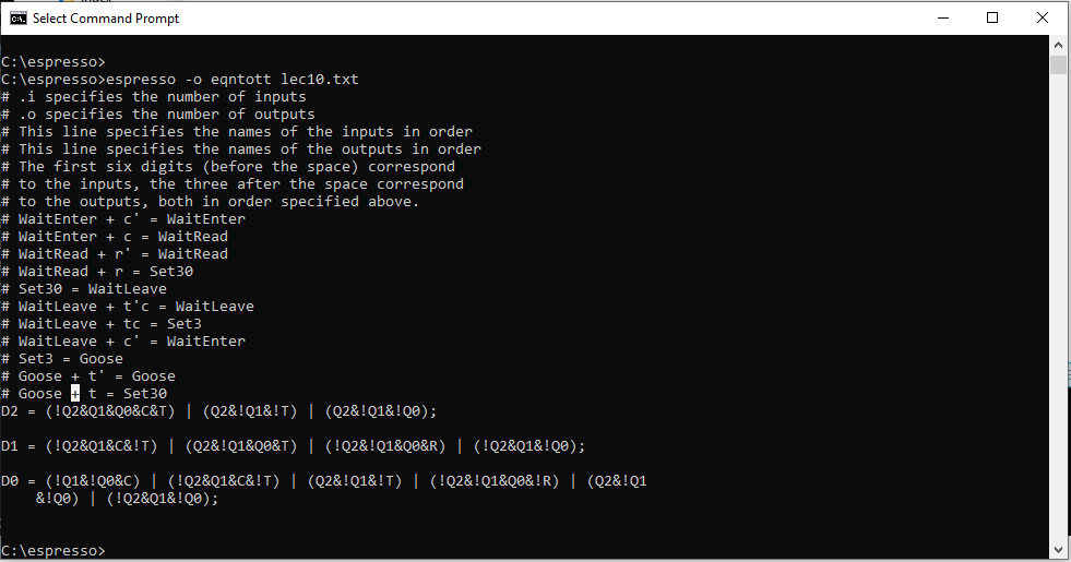 to help me. Espresso is a 2-level logic minimization tool that takes