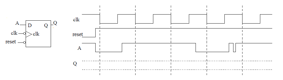 timing diagram for the output of the negative-edge triggered D flip-flop with