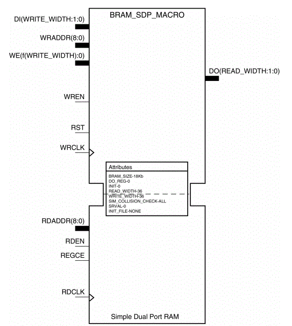 in the UNIMACRO library. We will be using a BRAM_SDP_MACRO in our design. According to