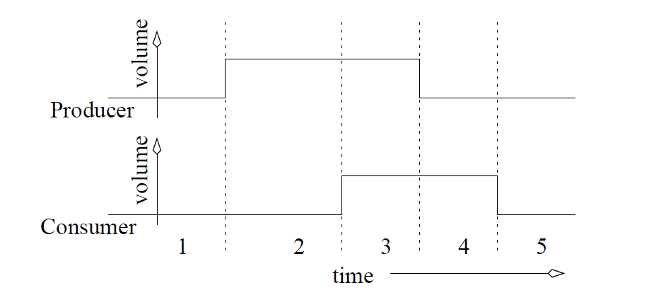 interval labeled 1, both the producer and consumer are quiet. Perhaps the