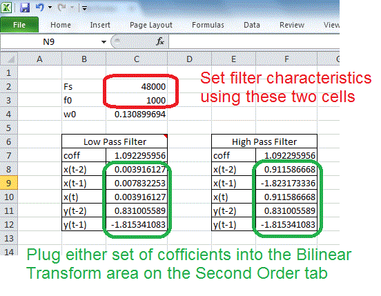 Digital Filter in Excel