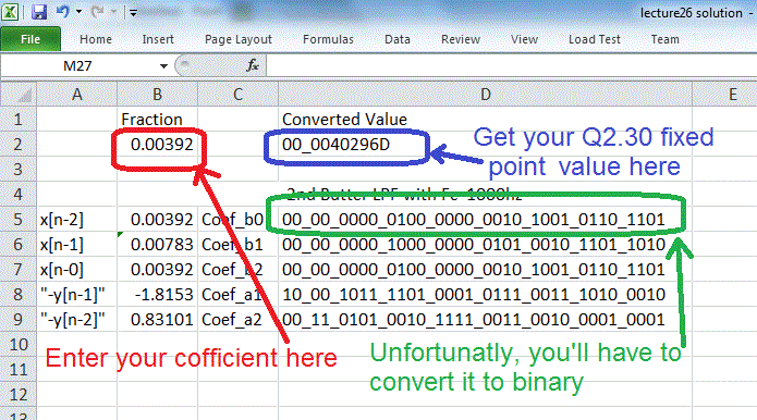 specify the coefficients using a fixed point representation.