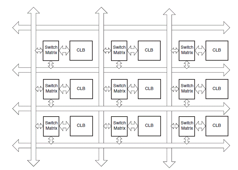 semester. In FPGAs, hundreds or thousands of CLBs are laid out in an array (commonly a switch matrix) known as the